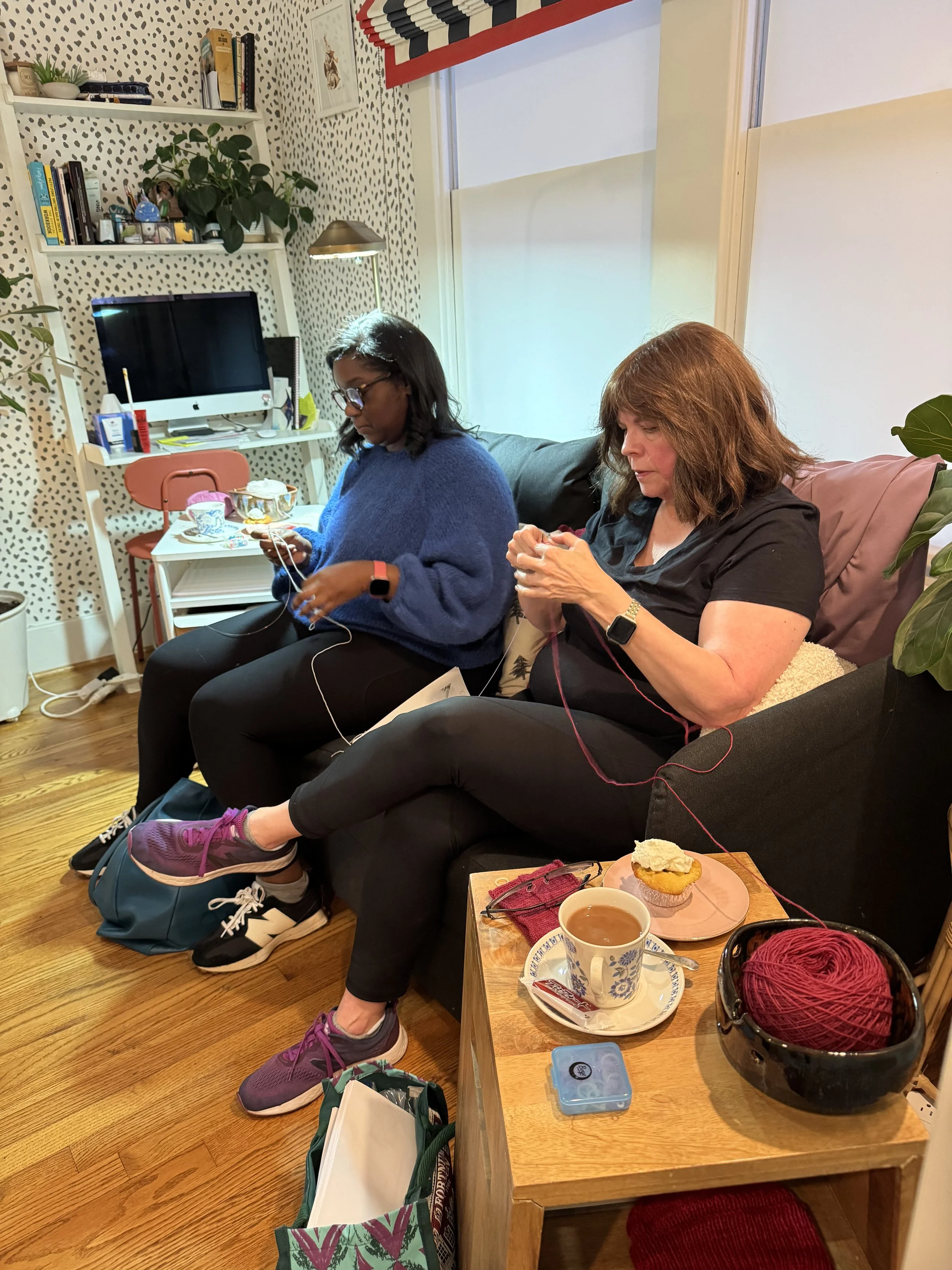 Bring your project, your questions, or your tangled mess. Tuesdays and Saturdays, 10am to 12pm. Tea and treats included. (Honestly, some friends come just for the scones)